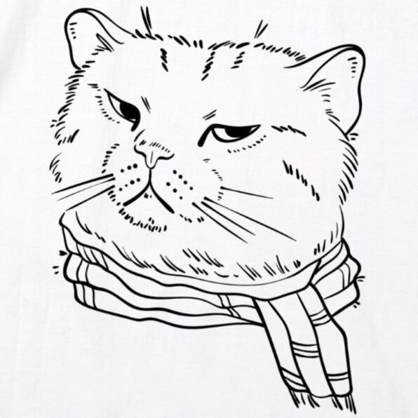 【受注生産】 モノクロネコさんイラストのTシャツ -Bパターン-