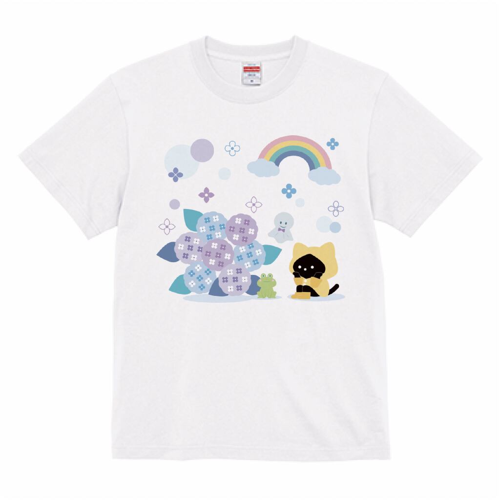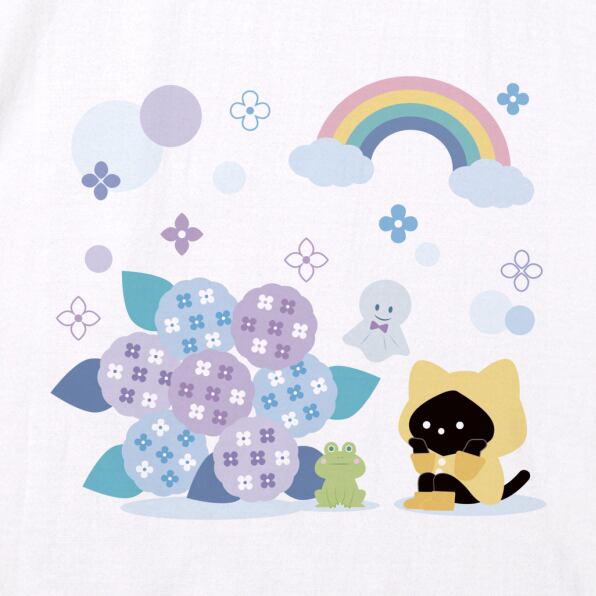 【受注生産】 梅雨を過ごす猫ちゃんイラストのTシャツ -Eパターン-