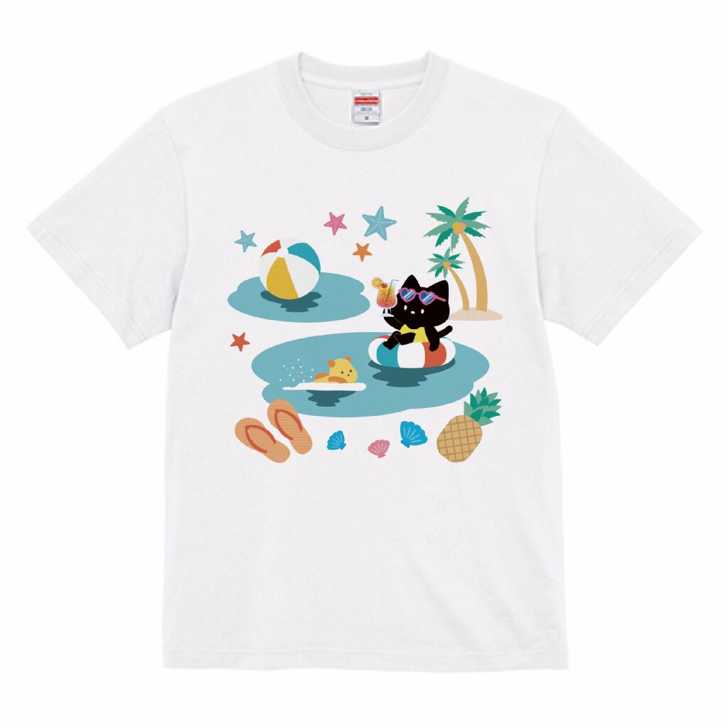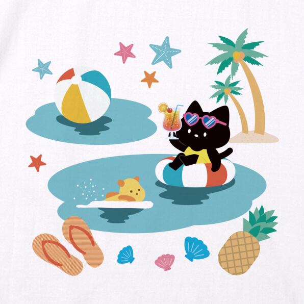 【受注生産】 夏を楽しむ猫ちゃんイラストのTシャツ -Bパターン-