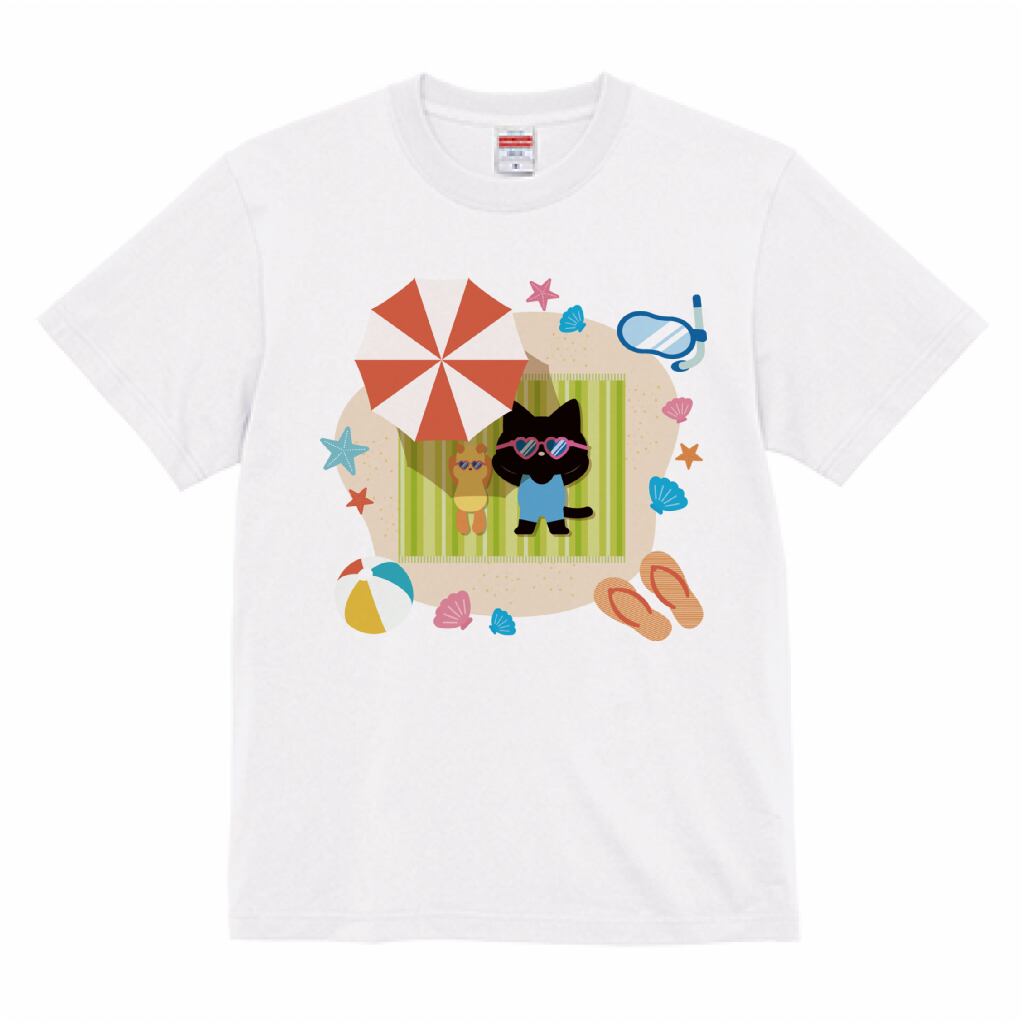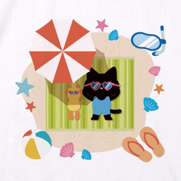 【受注生産】 夏を楽しむ猫ちゃんイラストのTシャツ -Cパターン-