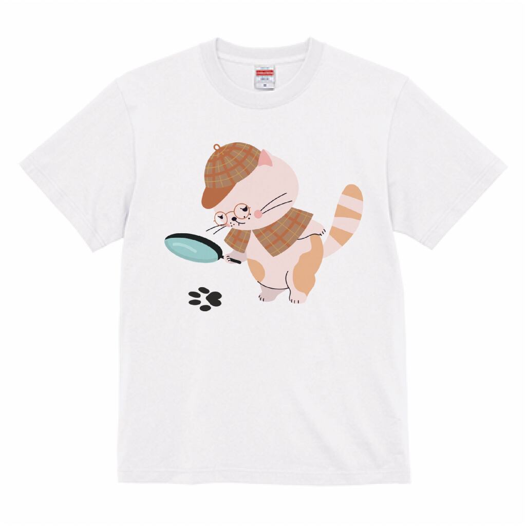 【受注生産】 名探偵…?のネコさんイラストのTシャツ -Bパターン-