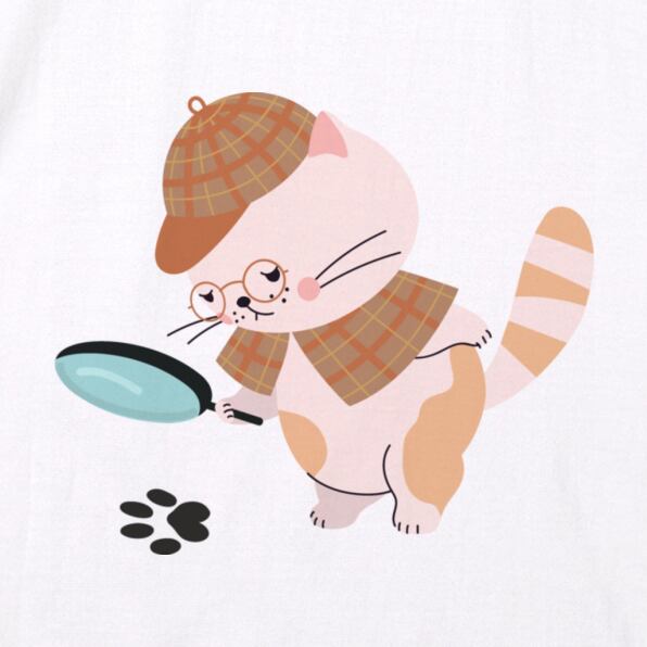 【受注生産】 名探偵…?のネコさんイラストのTシャツ -Bパターン-