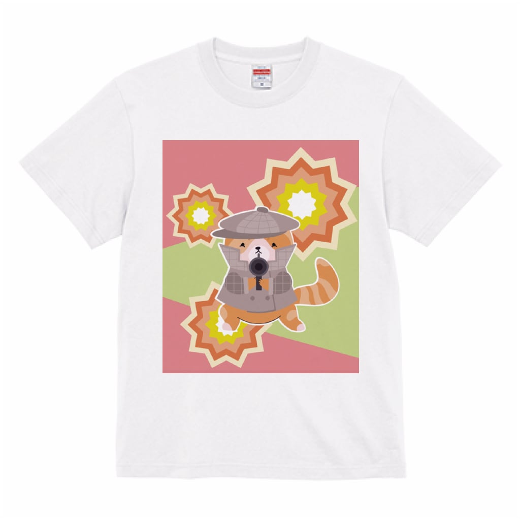 【受注生産】 名探偵…?のネコさんイラストのTシャツ -pop Gパターン-